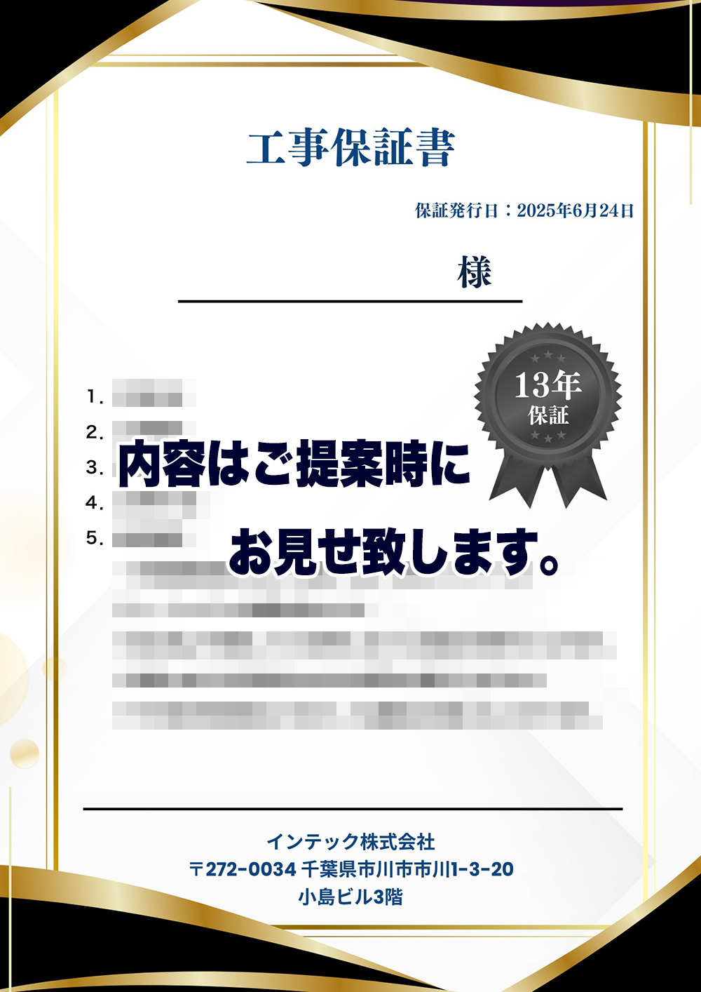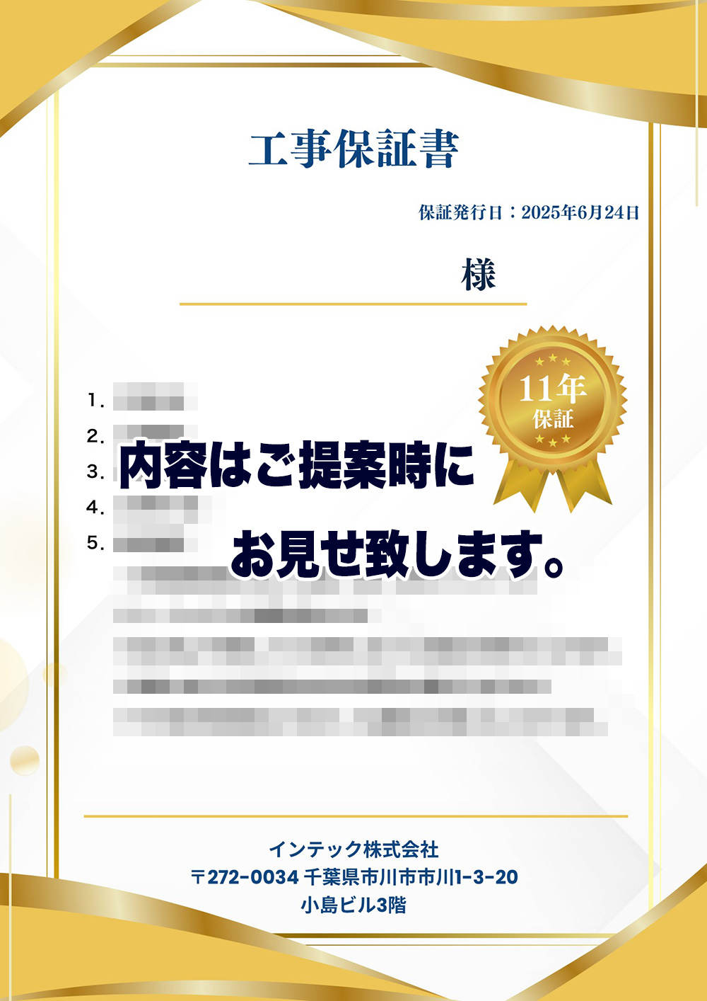 弊社では、リフォーム工事をご依頼いただいた全てのお客様に、正式な保証書を発行しております。