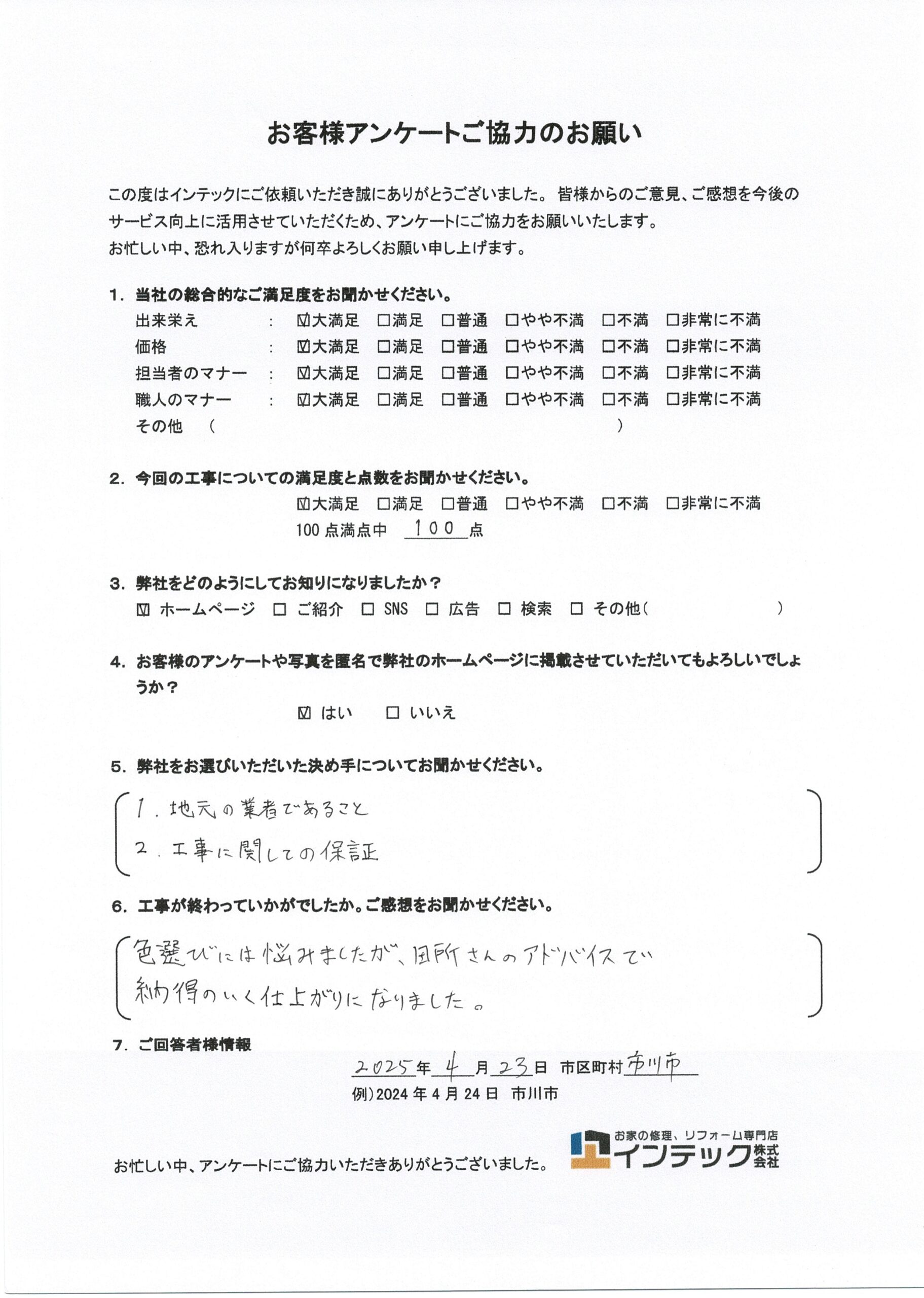 「地元の業者であること」「工事に関しての保証」を決め手にお選びいただけたこと、地域密着で取り組んでいる私どもにとって大変嬉しいお言葉です。